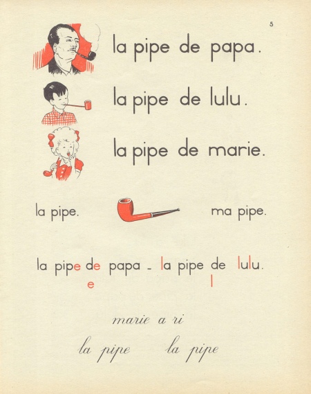 A children's book, using words and pictures together to implant images and begin the first, primary steps of word recognition. Just the picture of the pipe is abstract to a child in their very first books, but, when reinforced with the parent reading the words in specific sentences? The concept becomes clear.